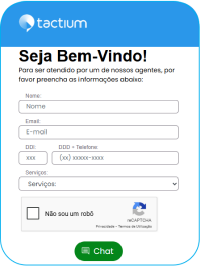 | Ativo ou Inativo: | Esse parâmetro serve para definir se você vai ou não usar o recurso do reCaptcha no WebChat. |