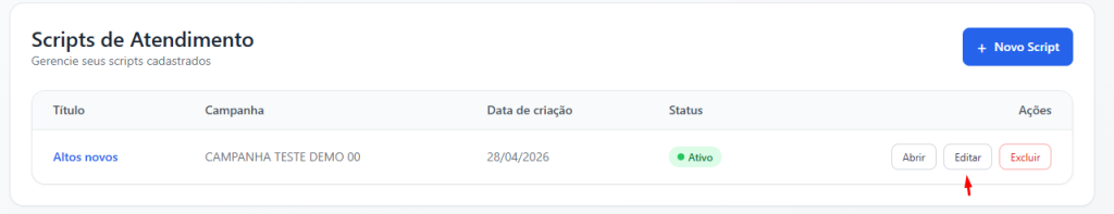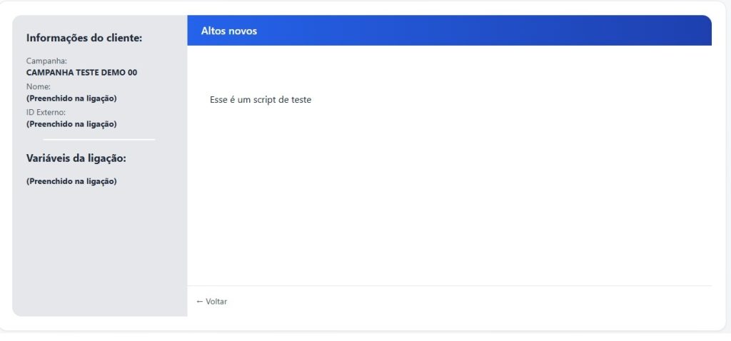 - Campanha: Campanha vinculada ao script (previamente cadastrada no Voice Monitor)