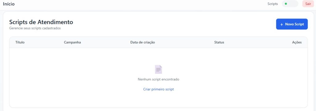 | Botão “Salvar Script” | Salva todas as informações preenchidas. Após salvar, o script fica disponível na campanha selecionada, caso esteja ativo. |