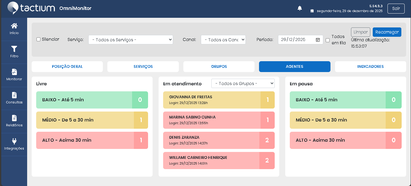 Monitorar atendimento por agentes