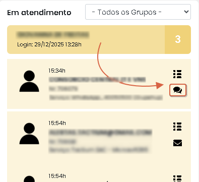 | Tipo | Ícone responsável pelo tipo de atendimento de mensageria. (WhatsApp/Telegram/Facebook/Instagram) |