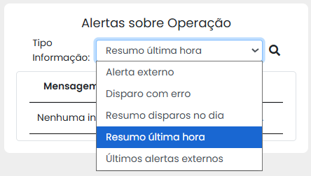 Observação: caso a busca não retorne resultados para o tipo de alerta selecionado, a mensagem “Nenhuma informação para o tipo selecionado” será exibida na tabela.