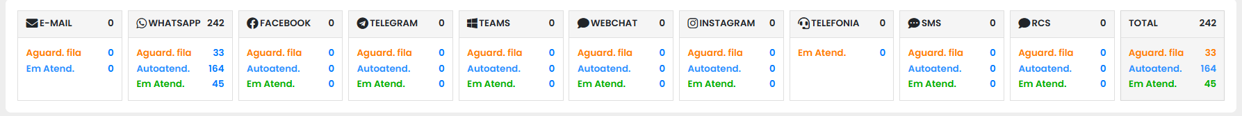 | Em atendimento | Informa a quantidade de clientes que estão em atendimento. |